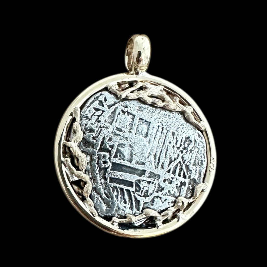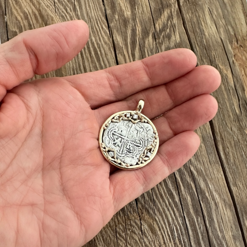 Authentic Atocha Grade 1, 2 Reales in 14K Gold Setting with 0.21CT diamonds