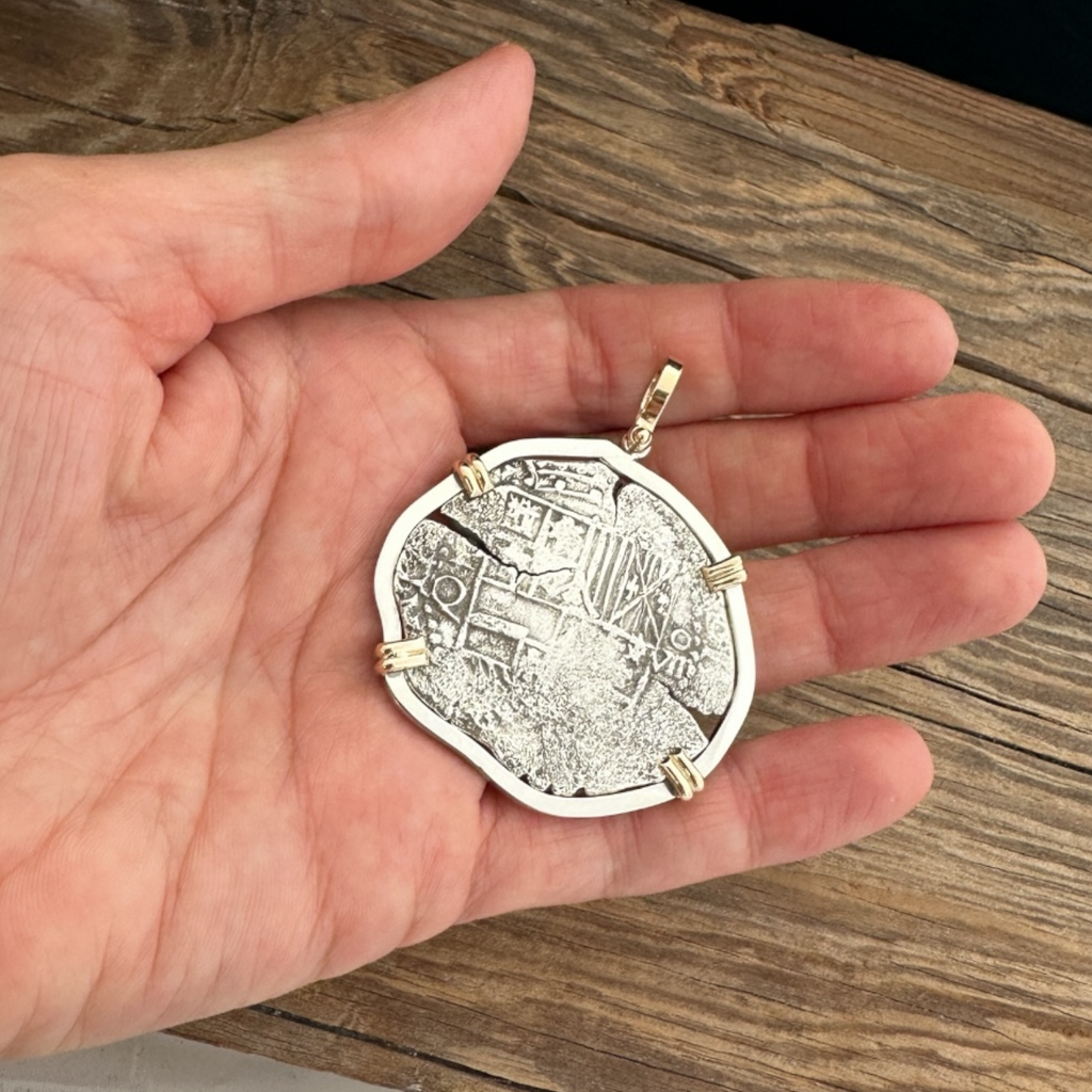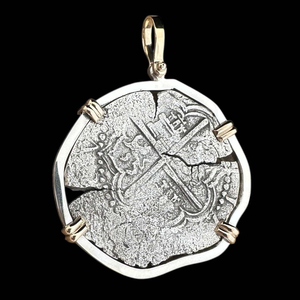 Atocha Shipwreck Coin Pendant in Silver and 14K, Grade 1, 8 Reales #85A-106581