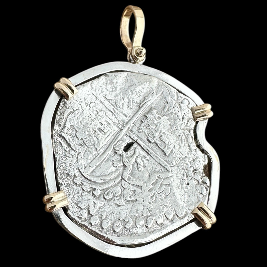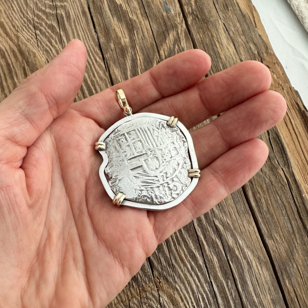 Atocha Shipwreck Coin Pendant in Silver and 14K, Grade 1, 8 Reales #85A-V1668