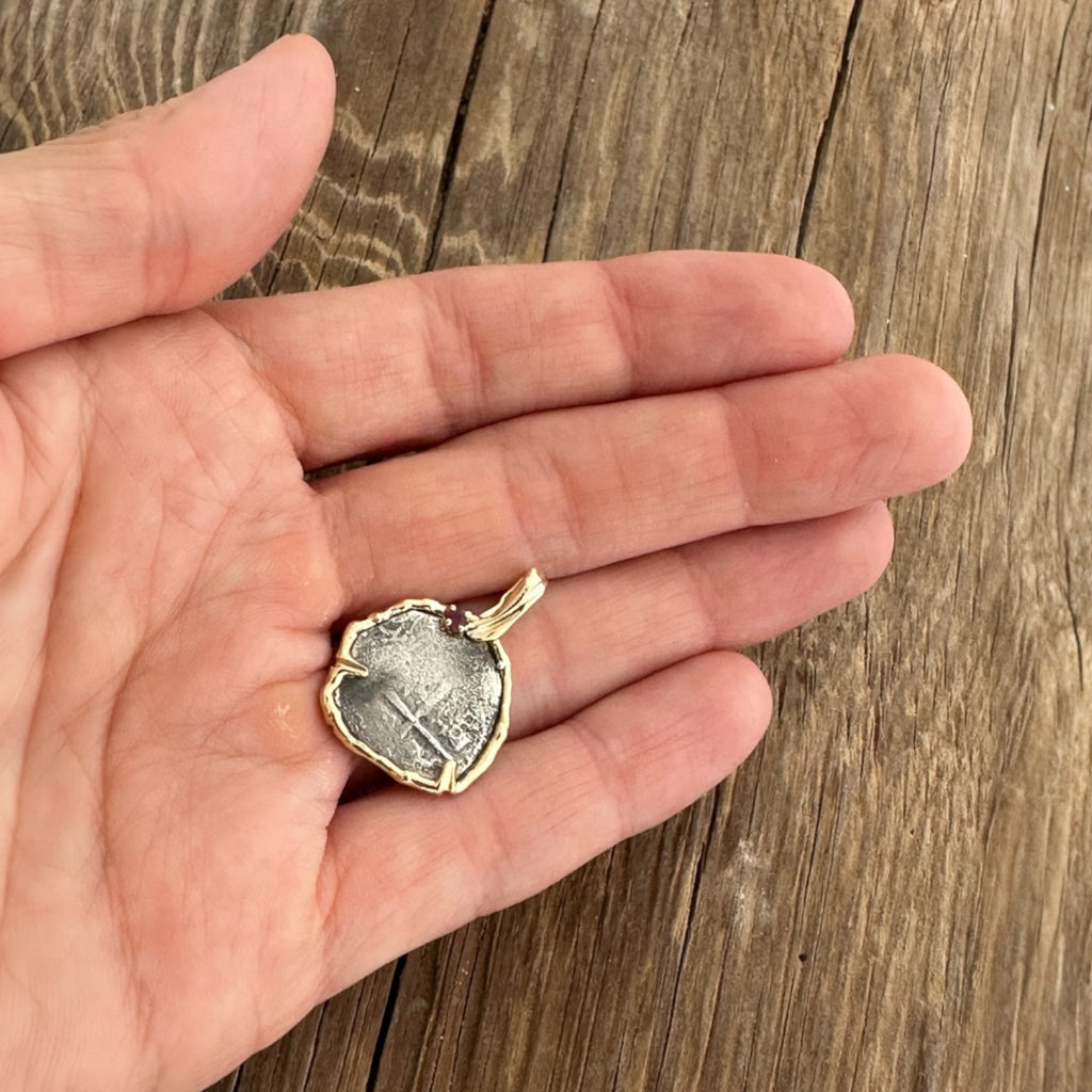 Authentic Cob Coin from Consolacion Shipwreck mounted in 14K Gold