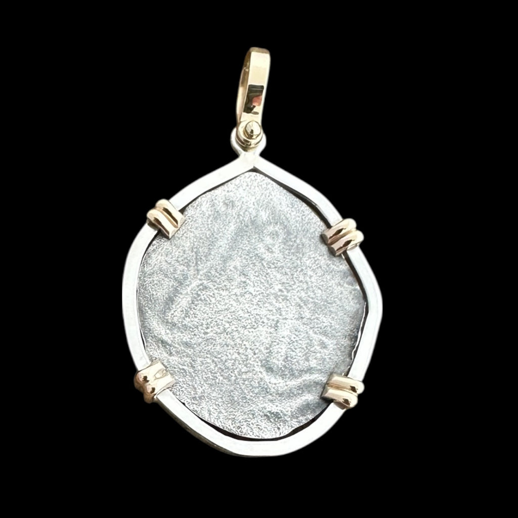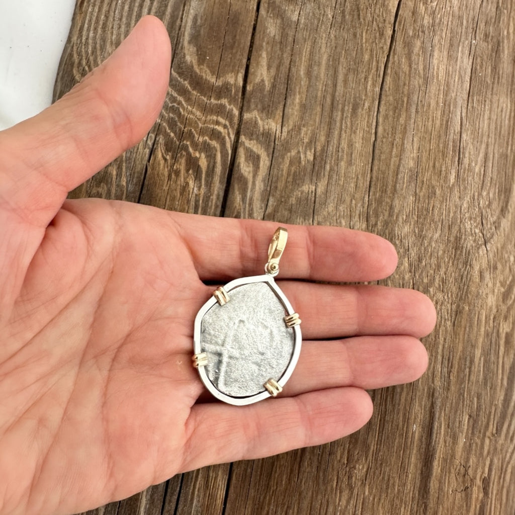 Authentic 8 Reales Coin from Consolacion Shipwreck in 14K and Silver Mount #8CNSL-JJ-32B