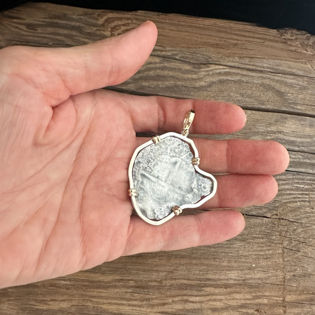 Authentic 8 Reales Coin from Consolacion Shipwreck in Silver and 14K Gold #CNSL8-JJ-MNT33B