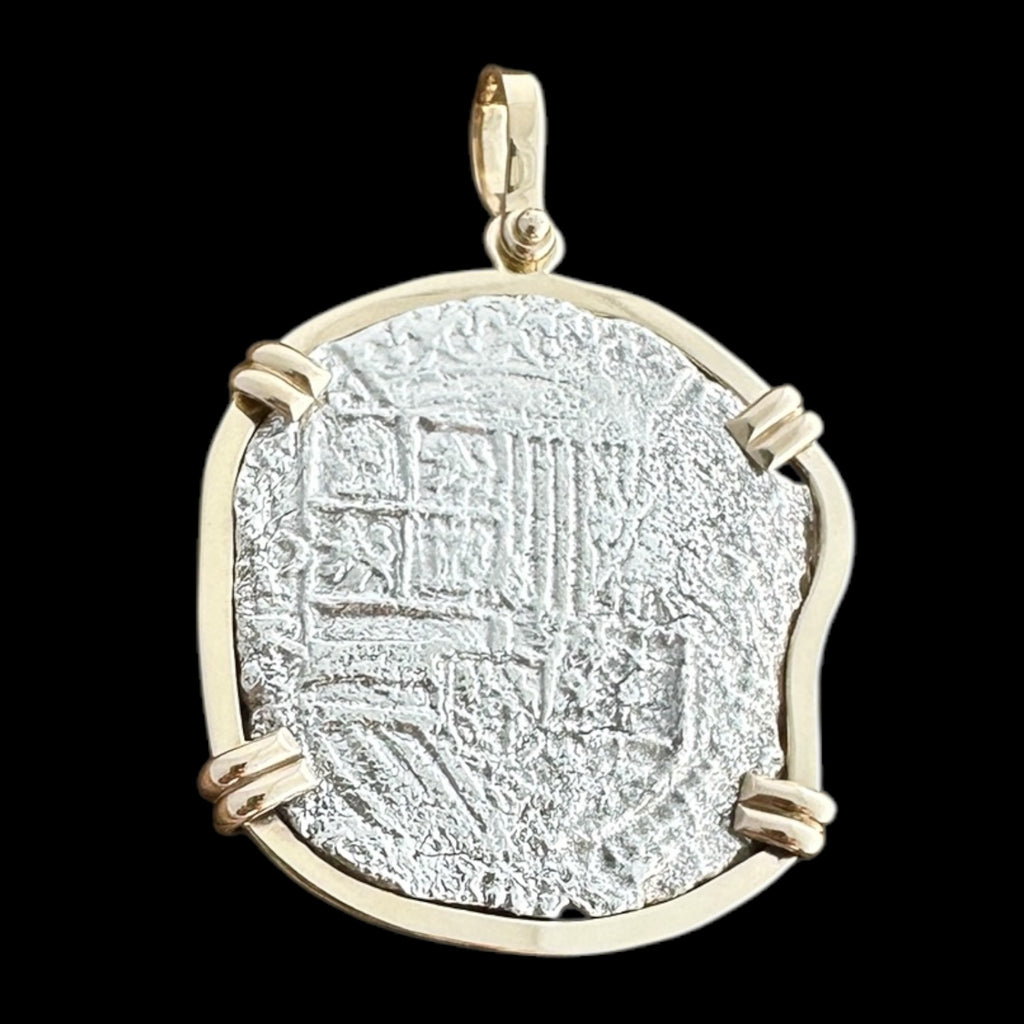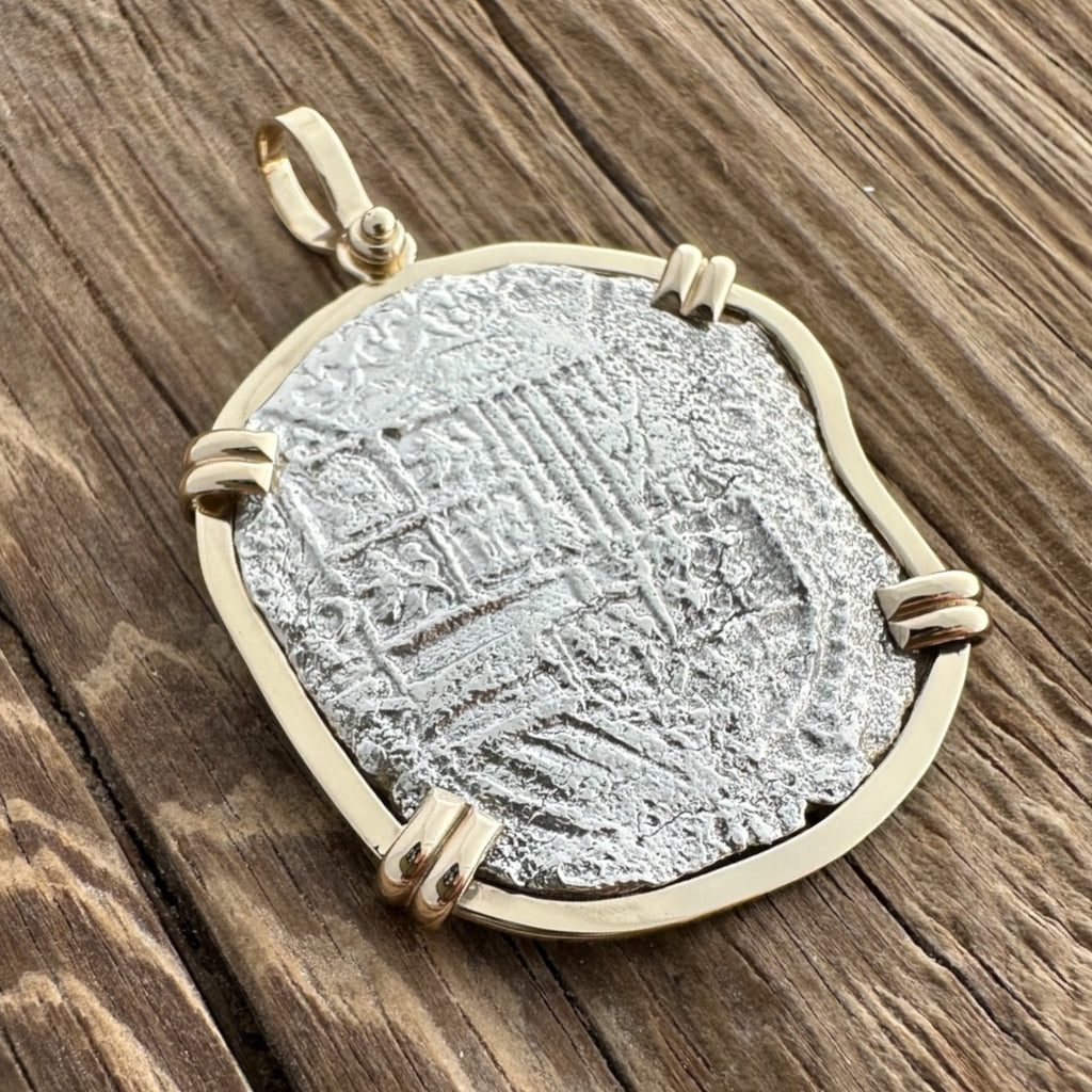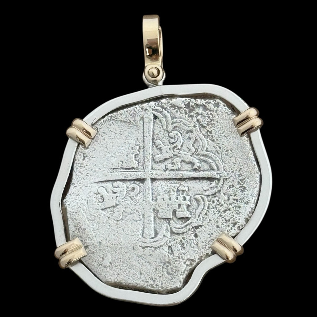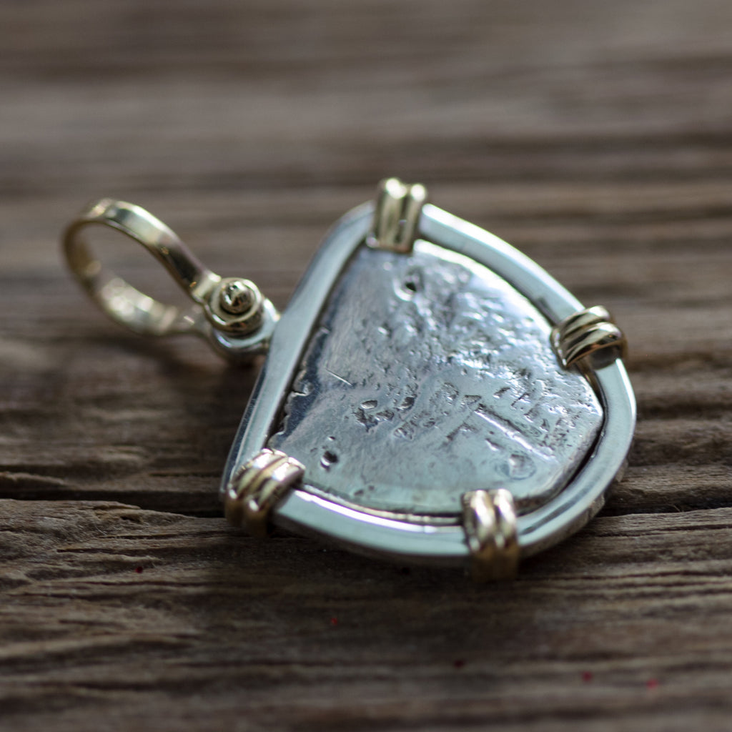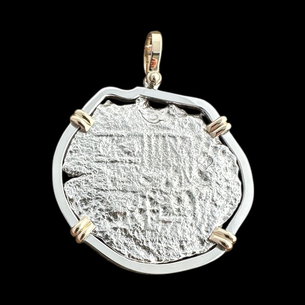 Atocha Shipwreck Coin Pendant in Silver and 14K, Grade 1, 8 Reales #85A-V1668