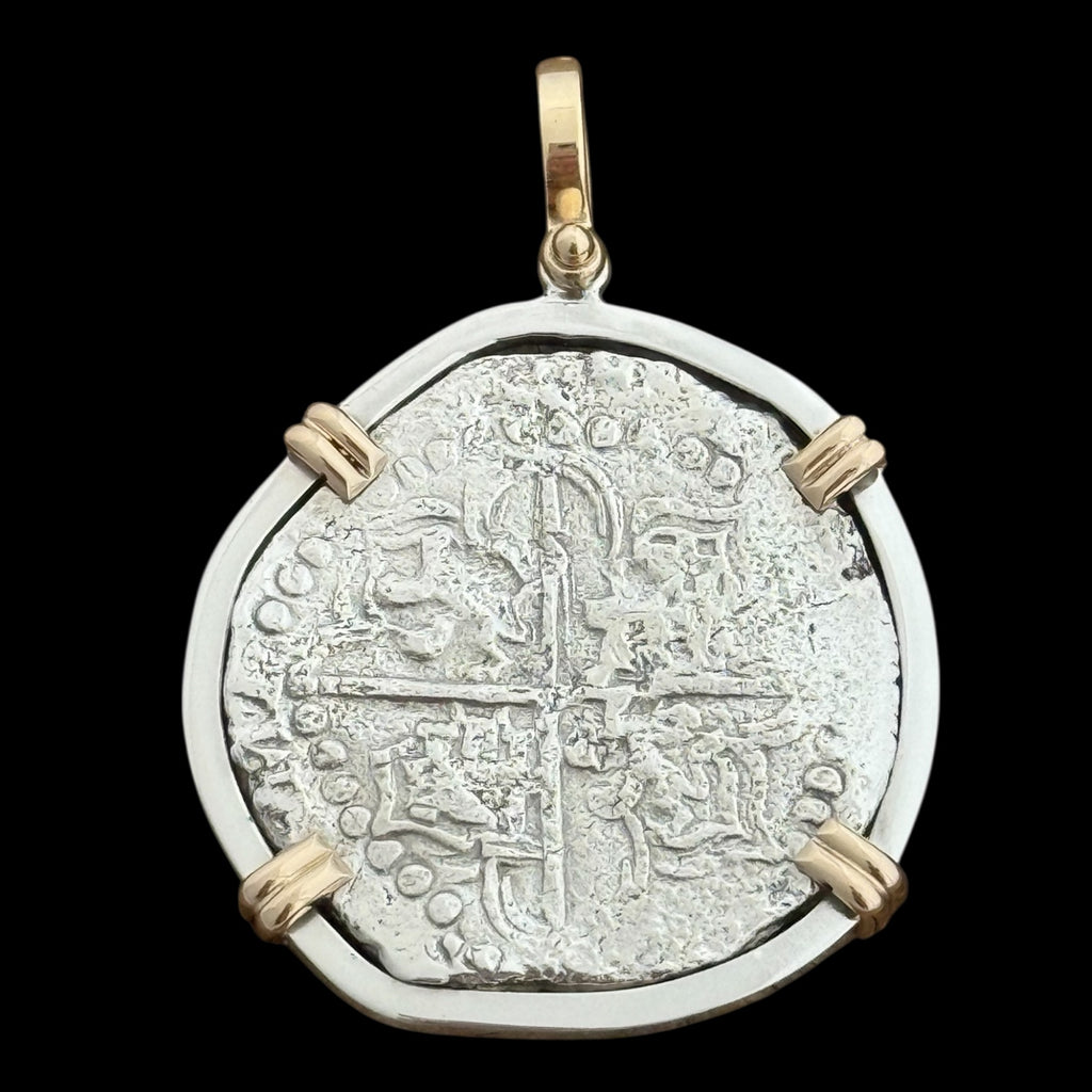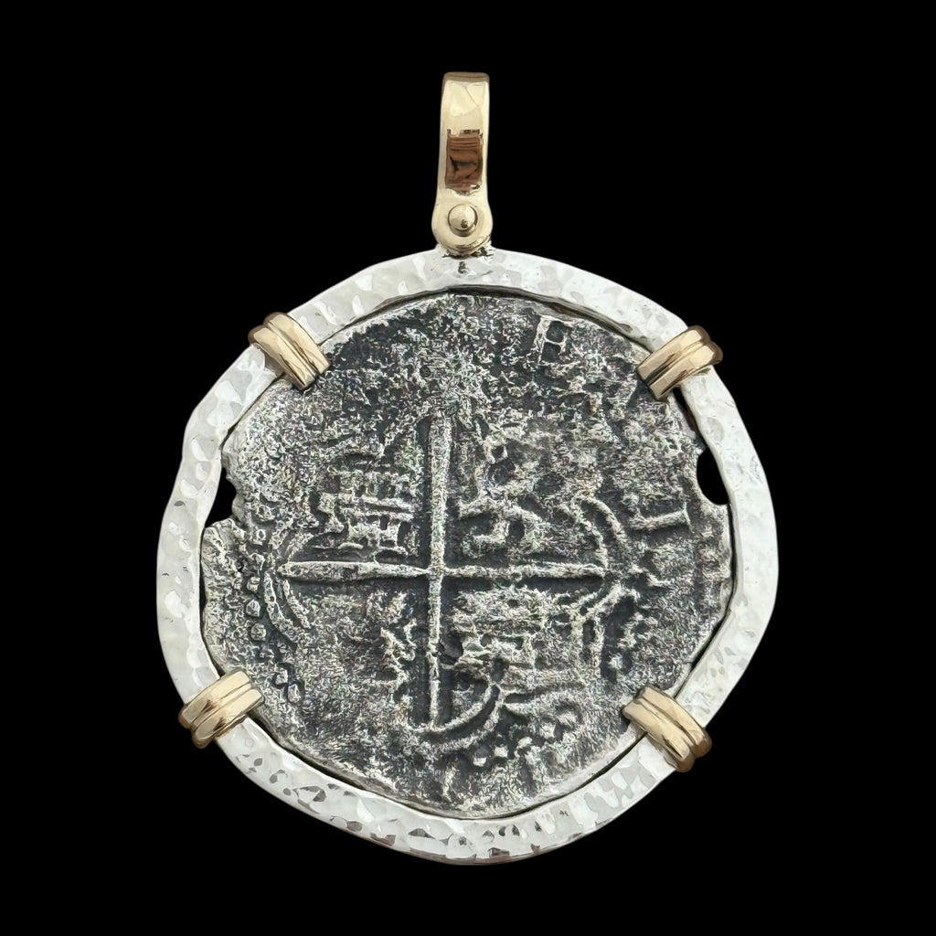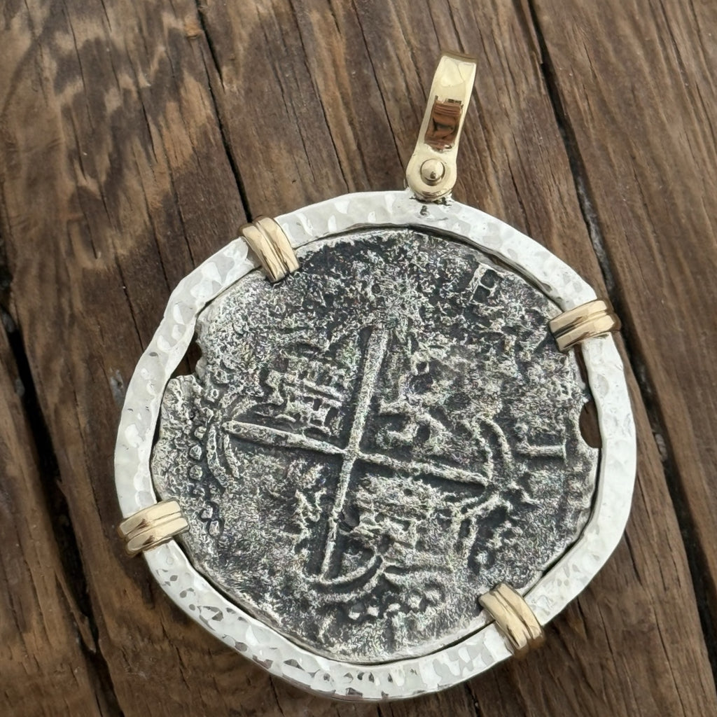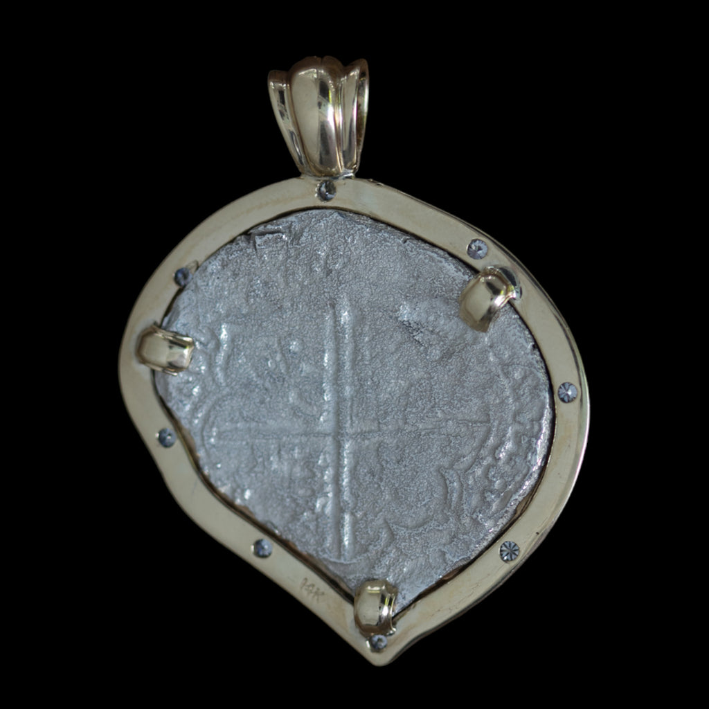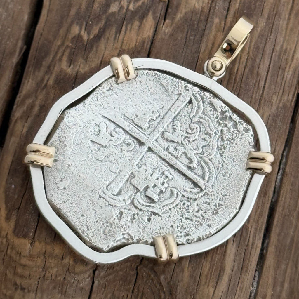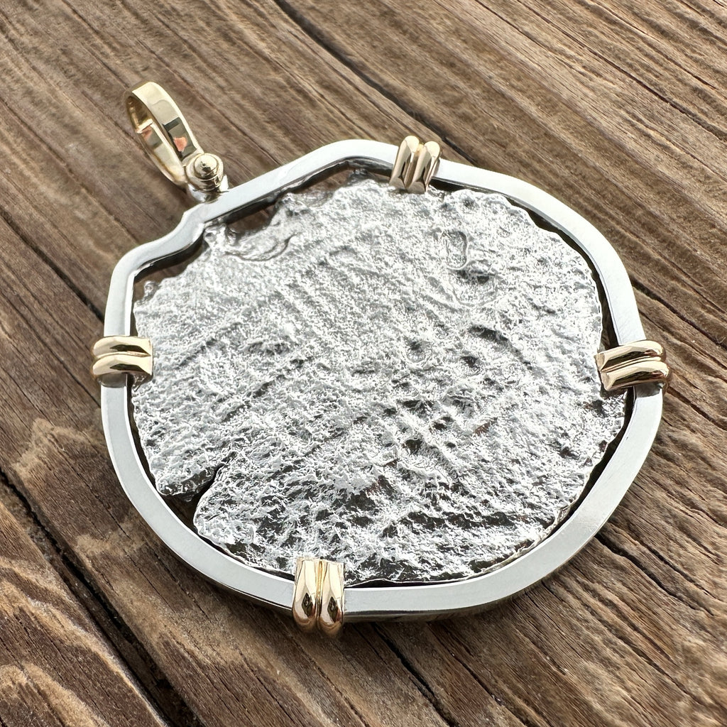 Atocha Shipwreck Coin Pendant in Silver and 14K, Grade 1, 8 Reales #85A-V1668
