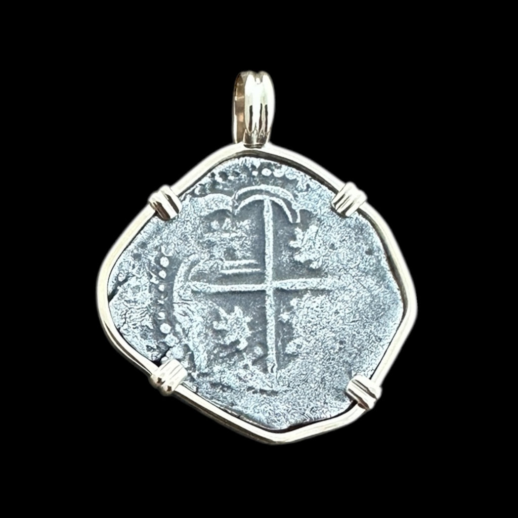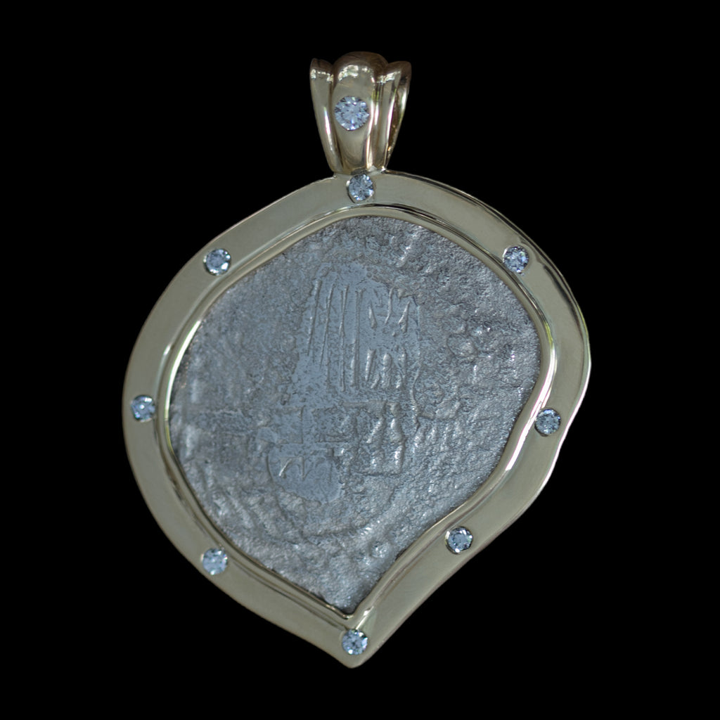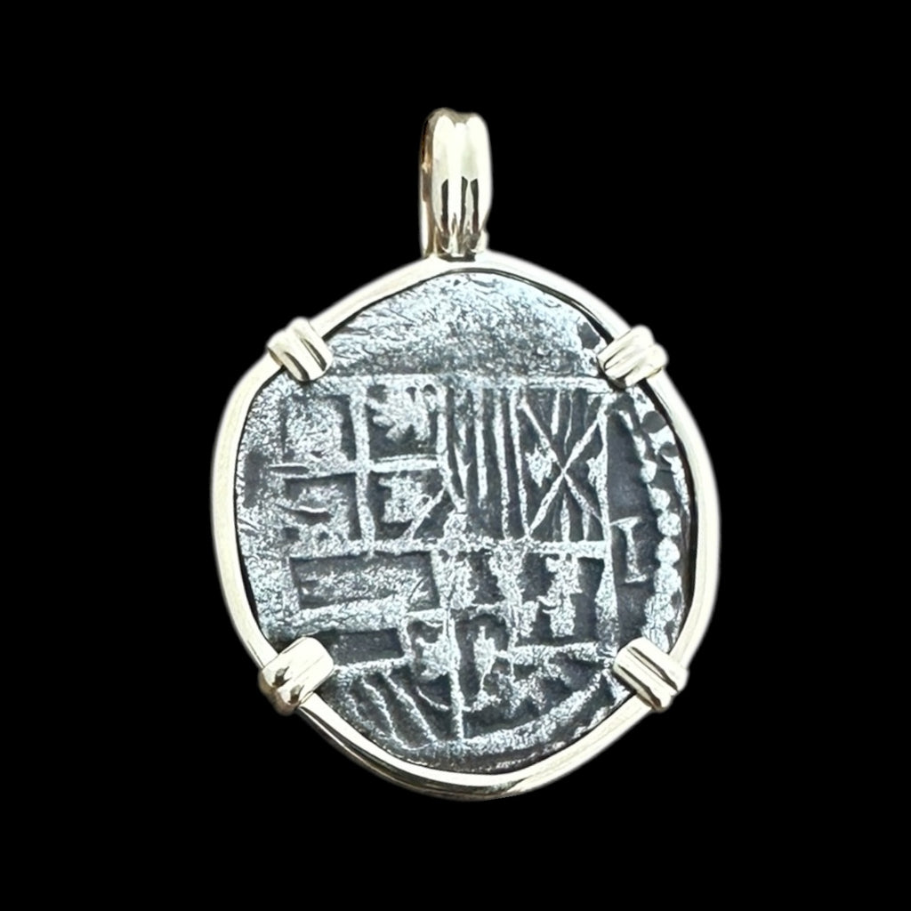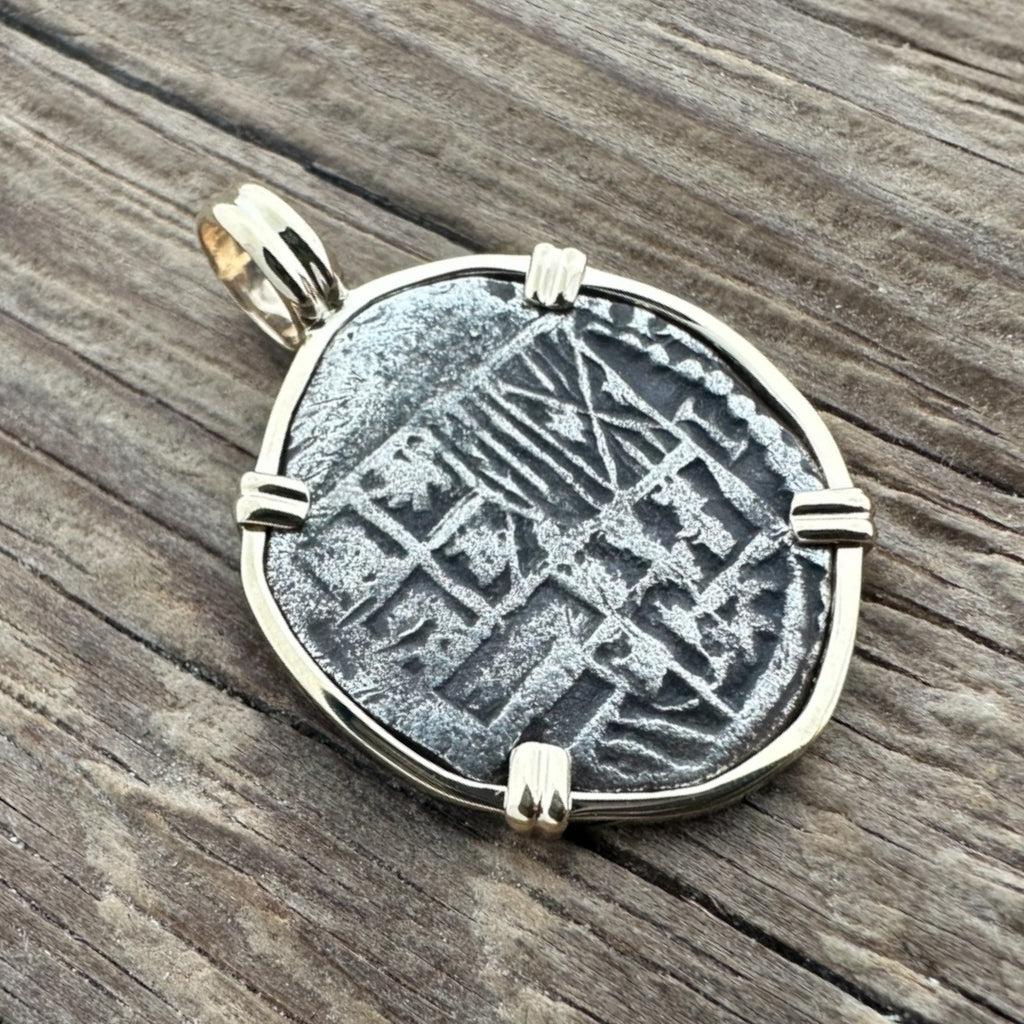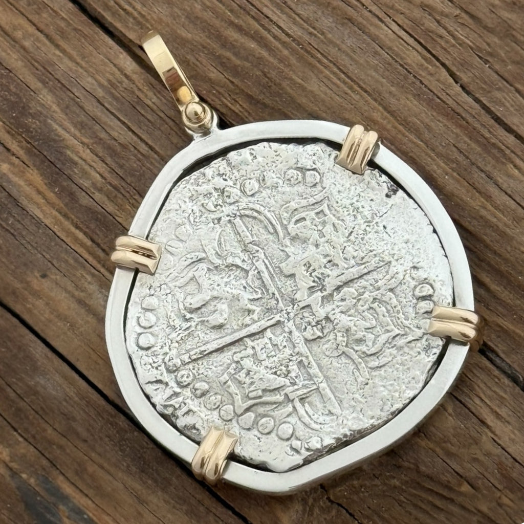 Atocha Shipwreck Coin Pendant in Silver and 14K, Grade 1, 8 Reales #85A-V1668