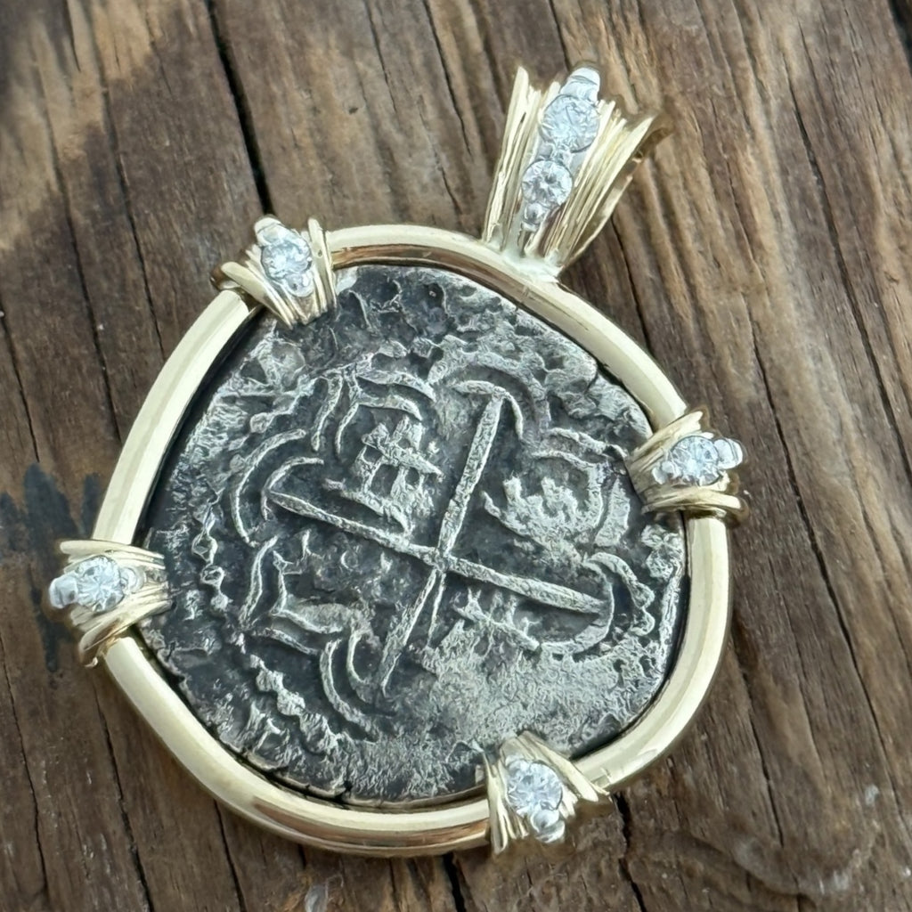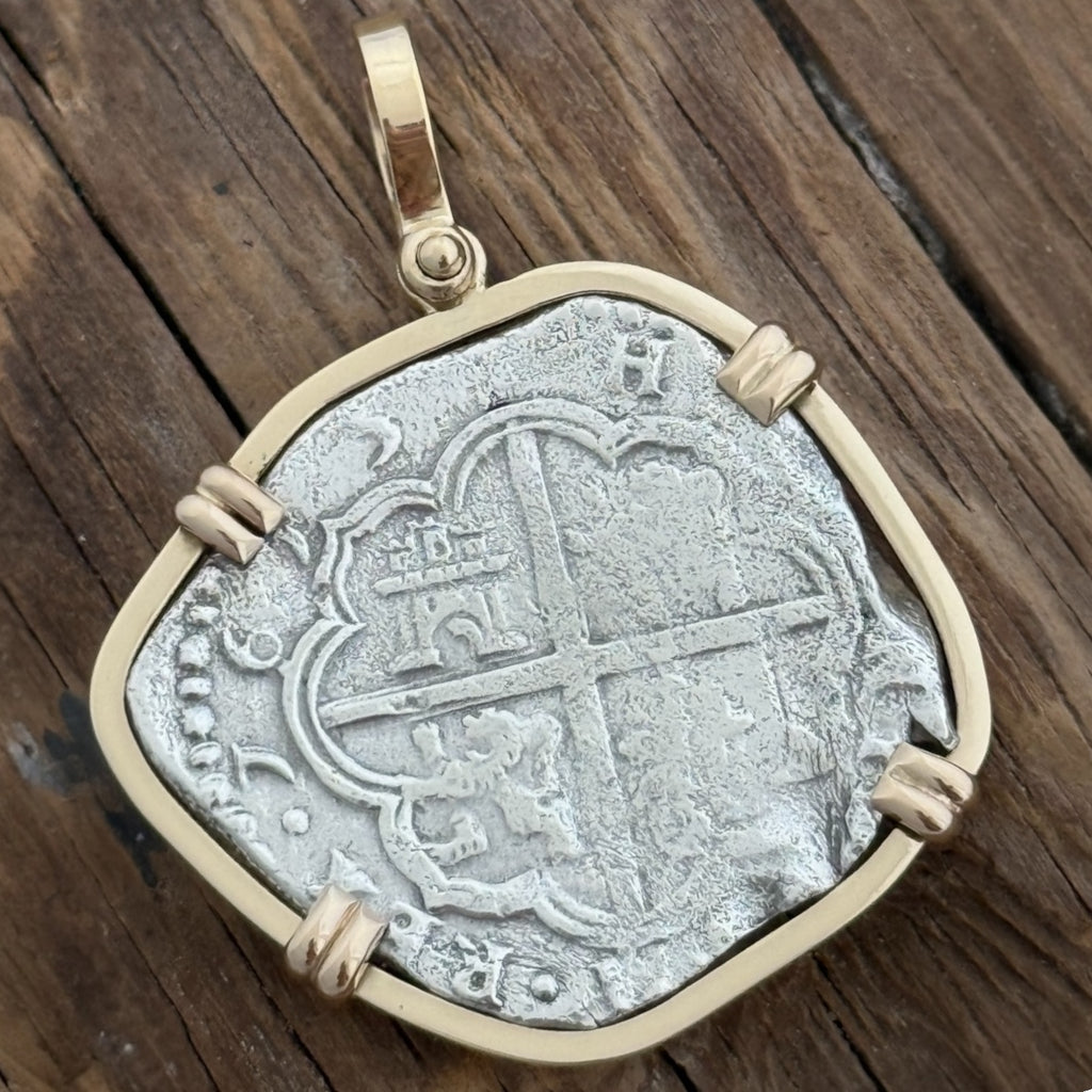 1715 Shipwreck Coin Pendant in 14k, Grade 1, 8 Reales #PC24-31991