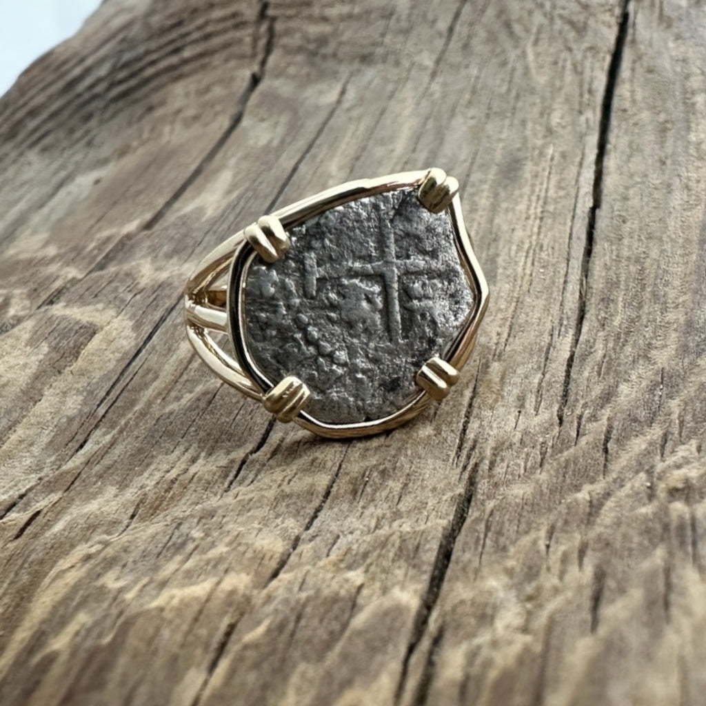 Authentic 2 Reales Land Cob set in 14K Gold Mount #COB2R-MNTDL223B