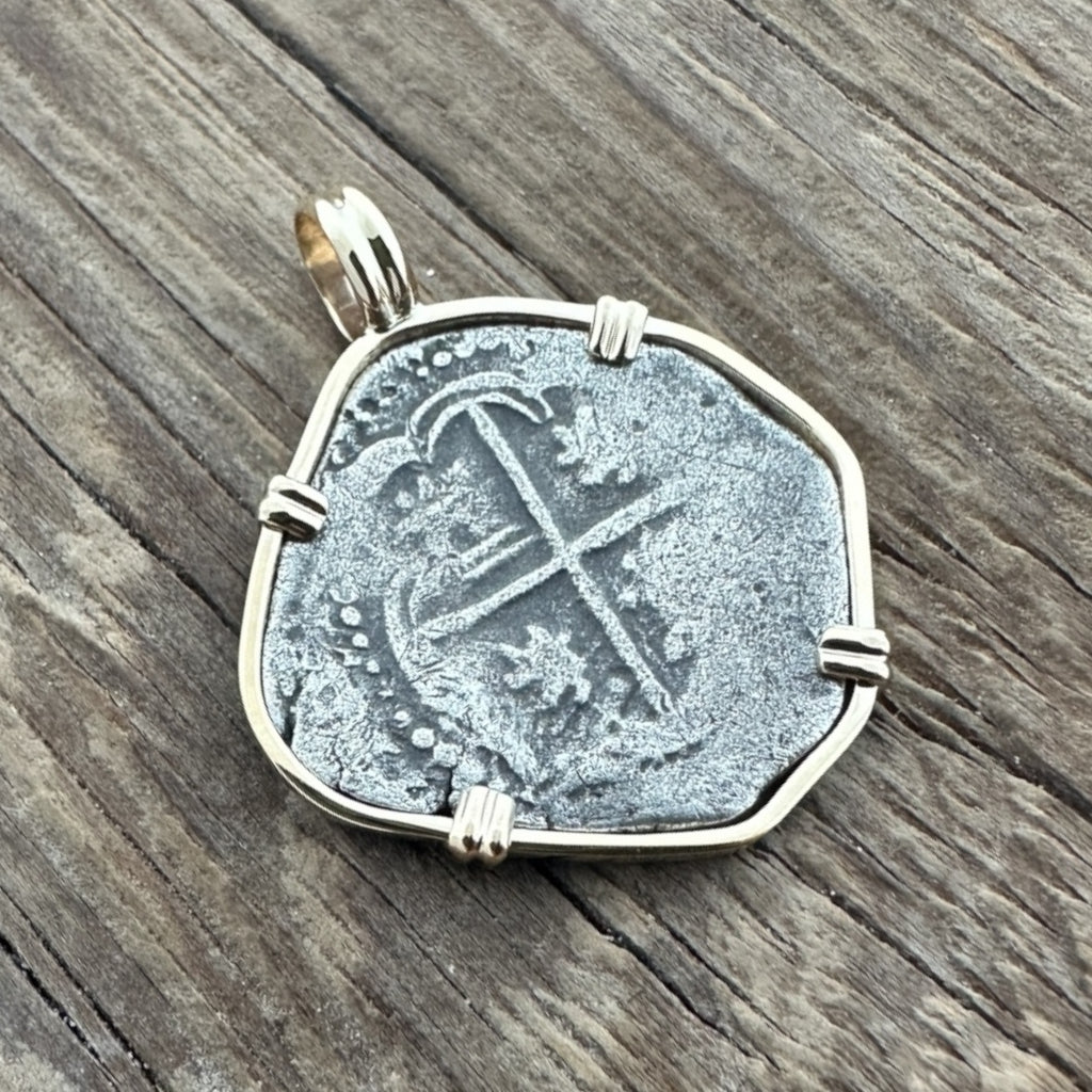 1715 Shipwreck Coin Pendant in Silver and 14k, Grade 1, 8 Reales #1715-24552