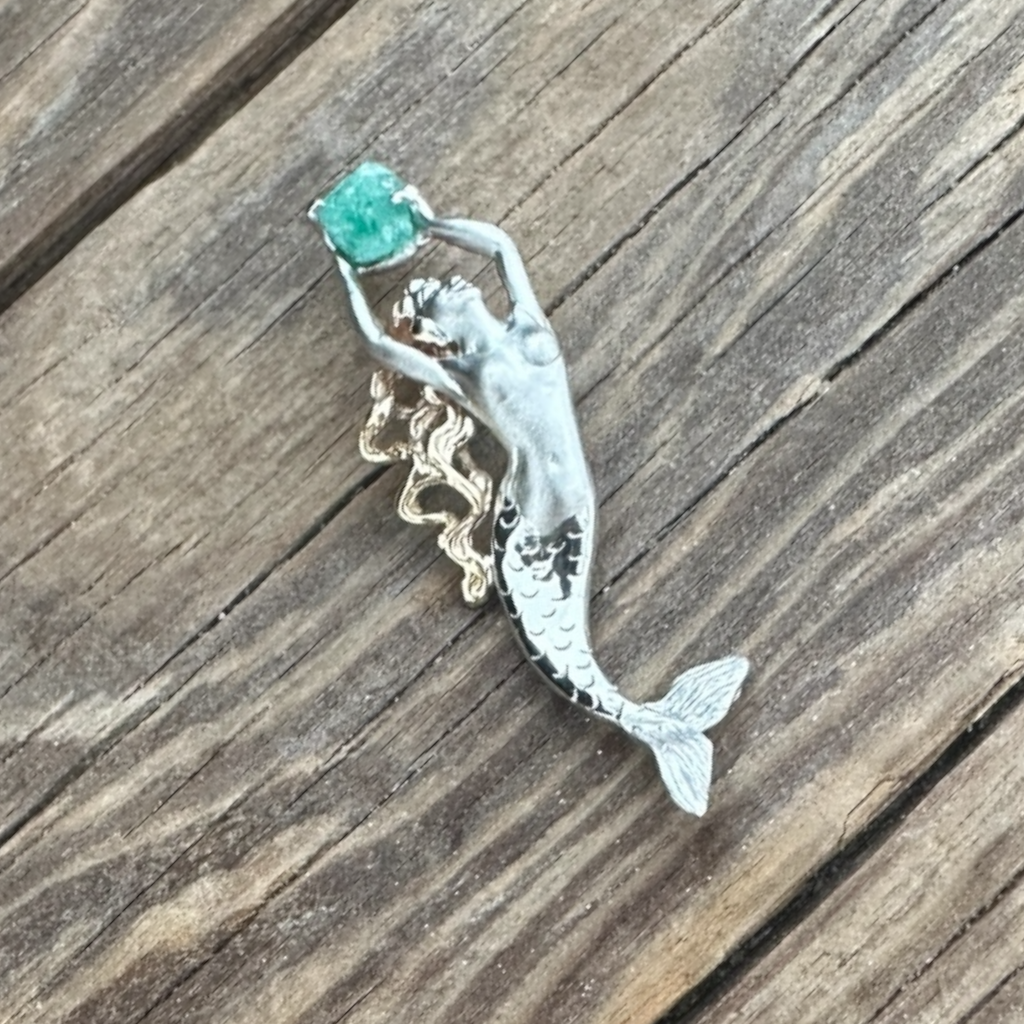 Authentic Atocha Emerald Mounted in Silver and Gold Mermaid #95A-63342