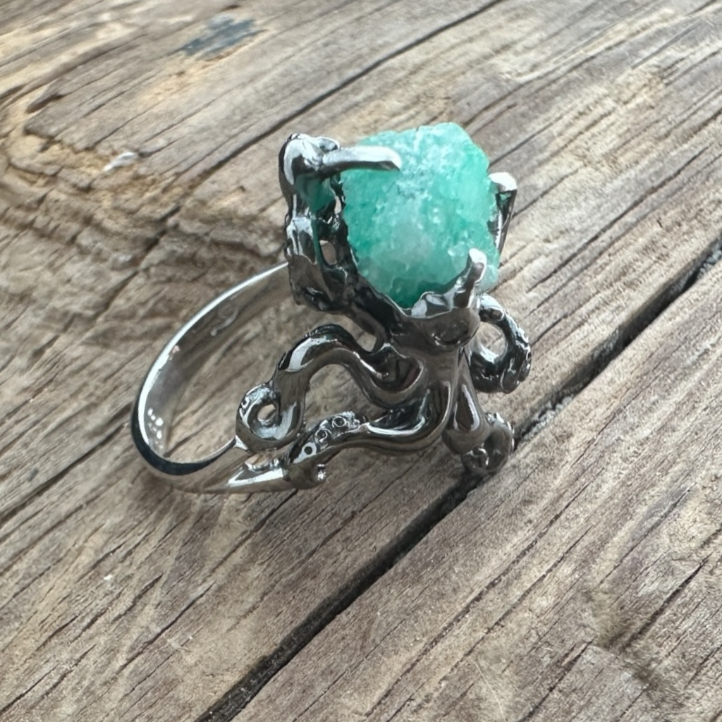 Authentic Atocha Emerald Set in a Silver Octopus Ring #95A-63017
