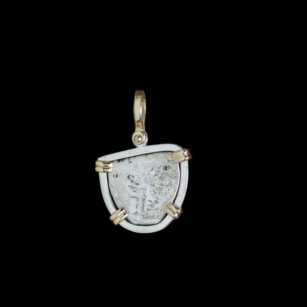 Atocha Shipwreck Coin Pendant in Silver and 14K Gold, Grade 3, 8 Reales #85A-203023